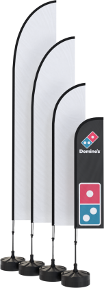 Our full colour printed feather flags are a popular way to promote any event or business. The feather flag kit includes a single sided flag banner, strong fibreglass poles, a simple ground stake and an oxford carry bag. UK manufactured, feather flags can hold a range of imagery including logos, photos and text. A single sided flag banner has a 90% show through so your graphic can be seen on reverse – however, please note the image is mirrored. Double sided feather flags are available. Lightweight, the feather flags are easy to assemble and dismantle.