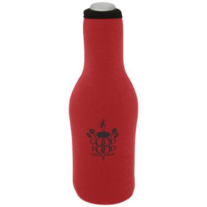 Recycled neoprene bottle sleeve holder that folds easily to fit in your pocket or purse. It has extra insulation keeping the beverage cool for a longer time, while also making the bottle comfortable to hold.