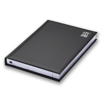 12 Month Diary. Bound in Matanza. White Silver Edged Pages. Silver Blocked Front Cover 1 Wording 1 Position. Year Date Silver Blocked Top Right. Padded Front & Rear Covers. Ribbon Marker. UK & World Maps. Perforated Page Corners. Packed in Bulk. Available in Black, Blue, Burgundy, Green, Red. Minimum Quantity: 25.