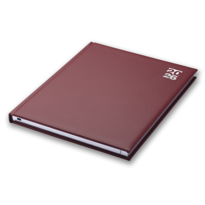 15 Month Diary. Bound in Matanza. White Pages. Silver Blocked Front Cover 1 Wording 1 Position. Year Date Silver Blocked Top Right. Padded Front & Rear Covers. Ribbon Marker. World Maps. Perforated Page Corners. Packed in Bulk. Available in Black, Blue, Burgundy, Green, Red. Minimum Quantity: 25.