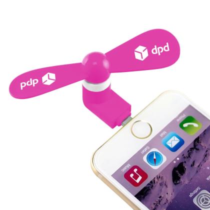 Phone Fans are a clever way to get your clients message across, the practicality of the item makes these very popular. With the power being supplied by a Phone there is no need to worry about changing the batteries in the product. As standard they are printed to 1 blade but can be printed both sides (additional print cost).They are available with a Type-C, Dual Fitment or 3-in-1 Fitment