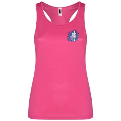 Technical, breathable, easy-wash and easy-dry fabric. Ribbed armholes and neckline. Racerback and side seams. Removable label.