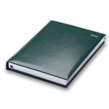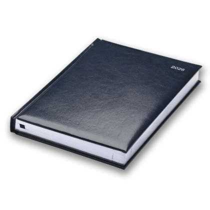 12 Month Diary. White Pages. Silver Edged Pages. Padded Cover. Ribbon Marker. Daily Historical Facts. Head and Tail Bands. Section Sewn. UK and World Maps. Perforated Page Corners. Size: 145x205mm. Cover Available in Black, Blue, Burgundy, Green, Mid-Blue, Red.