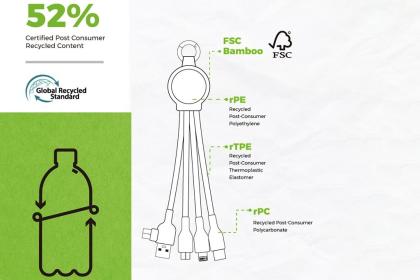 Made from bamboo and rPET, this 3-in-1 cable delivers 2.4A fast charging via USB-C, Micro USB, and Lightning. Features a custom LED-lit logo—an eco-conscious promotional gift.