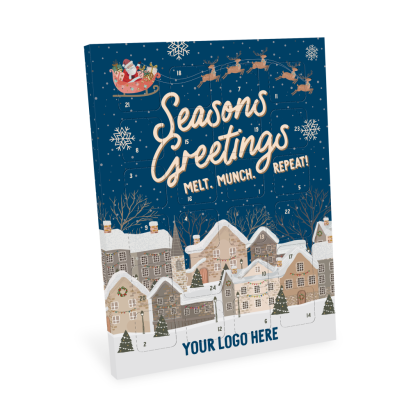 Holidays are coming! Order your amazing advent calendars now to beat the rush! Delicious advent calendars filled with milk chocolates (made in-house using the finest cocoa at our UK chocolate factory).These advent calendars are easy-to-post making them the perfect feel good gift for your staff and clients. Your logo will be on display all winter long putting you at the forefront of their thoughts, whilst tucking into a cheeky treat every day in December. For an extra unique touch, you can also add in custom wording behind the doors too. All of our eco-credentials included. Made in the UK